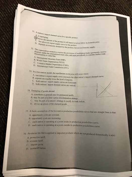 One nations export supply curve intersects the other. A tax imposed by a nation on an imported good. Lies de pends on domestic demand for the product but not on 32.